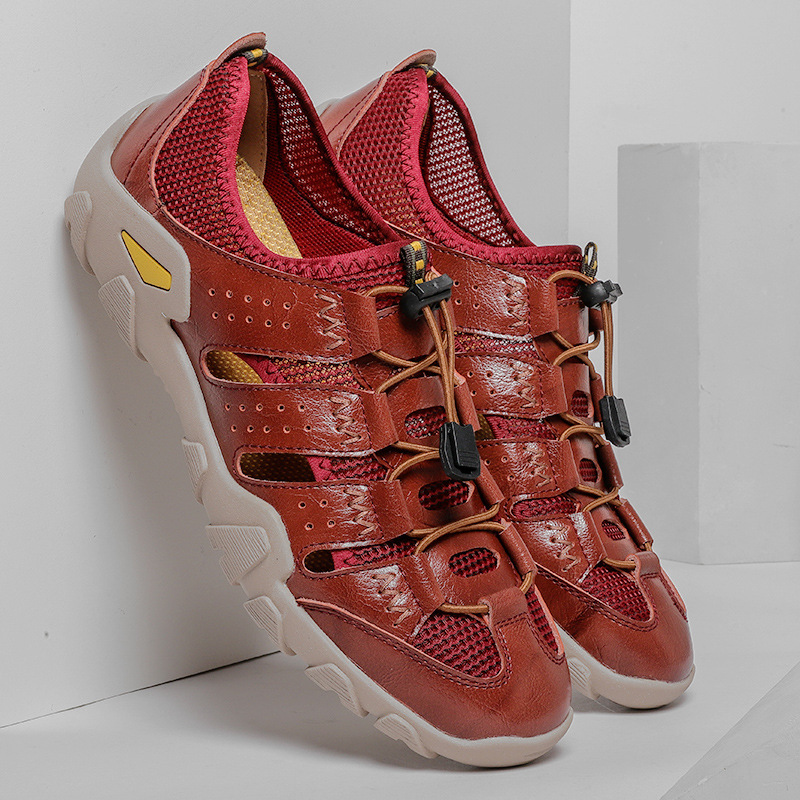 Beach Shoes Outdoor Hollow Sandals Men’s Leather Hole Shoes